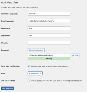 3. Fill out the form and set the role to Administrator.
